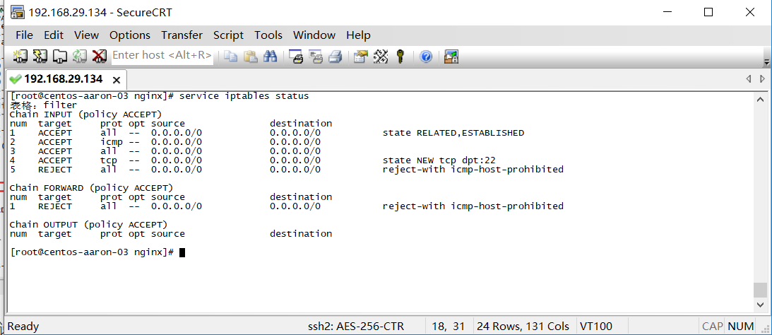 (2.14)检查linux防火墙发现只接受端口22的数据包