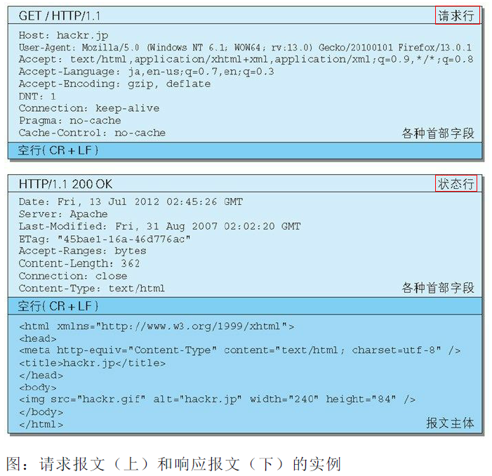 - 两者由最初出现的空行(CR+LF)来划分。