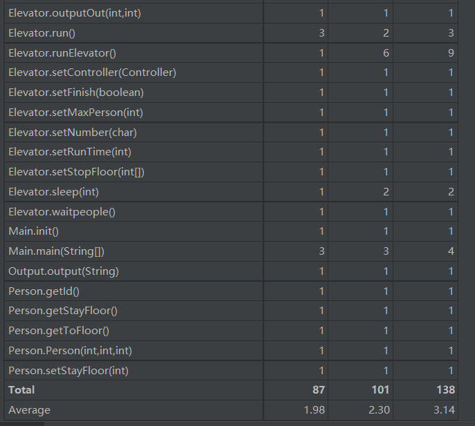 3、优缺点分析:其实前两次作业虽然写的都很快,但最后还是设计部分的有瑕疵导致每次都有部分内容需要重构,这次虽然控制器不是一个线程了,但是对于多电梯的扩展难以分配请求,所以以后的作业对于架构还应该多下功夫,否则每次架构部分低需要重构还是挺花费时间的。