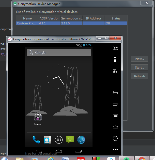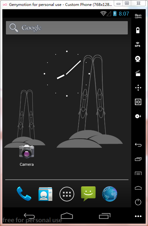检验Genymotion无问题的方法是可以在其上面正常打开虚拟安卓模拟器设备,如图: