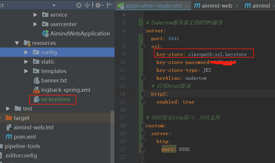 将ssl.keystore拷贝到项目resource目录下,然后修改配置文件