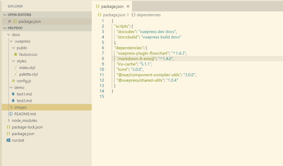 - docs.vuepress:用于存储vuepress配置文件,样式,以及公共文件