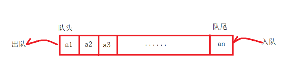 队列有两头:队头,和队尾。从队头出队元素,在队尾入队新的元素。