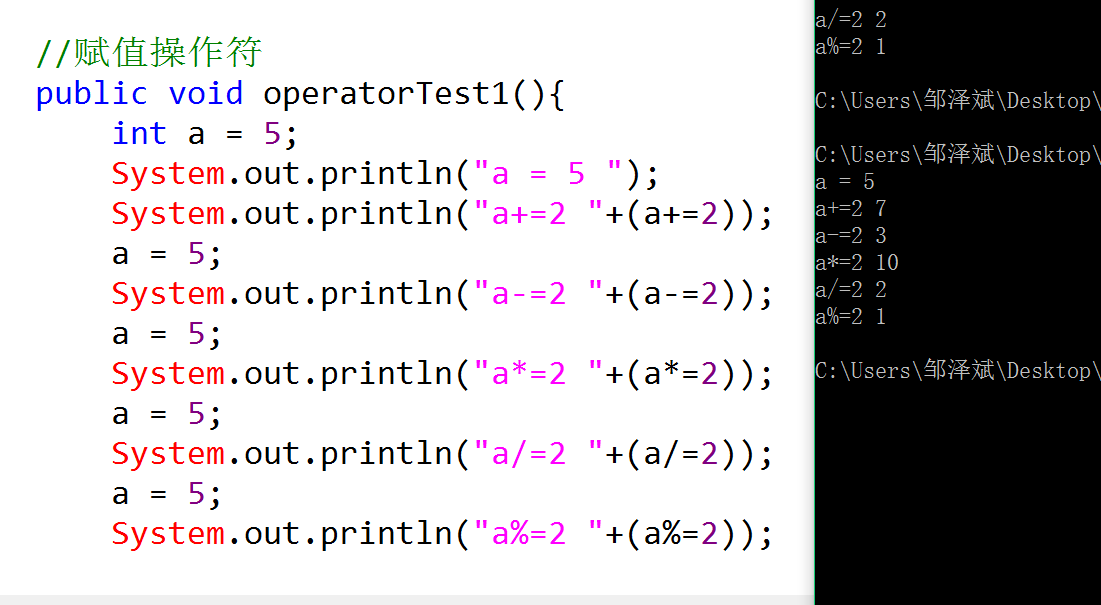 /=一个变量和另外一个数据相除,并把结果赋值给这个变量