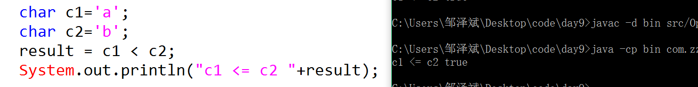 char类型也可以进行比较,比较的是字符编码后的数据大小