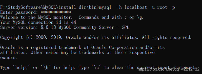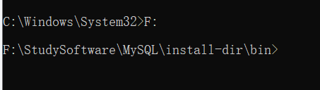 cd \StudySoftware\MySQL\install-dir\bin(我安装mysql下的bin目录位置)