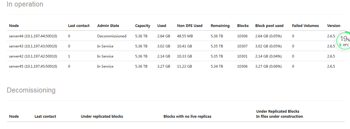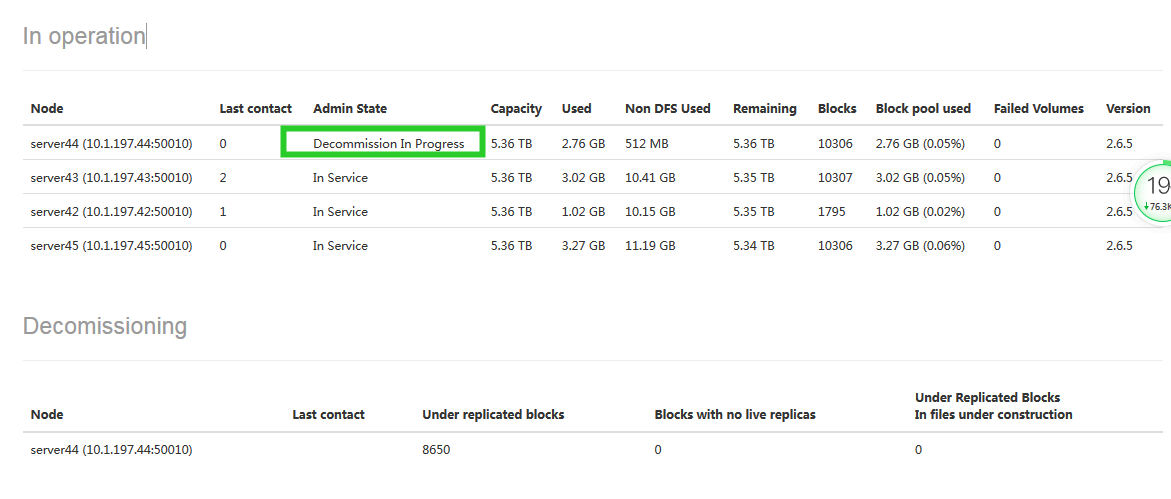 可以看到server44节点状态是 decommission in progress