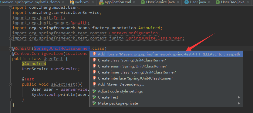 在一个demo项目里,想搞一个junit测试单元,用spring-test和mybatis连接数据库进行CRUD操作。 无奈,添加了dependency之后,总是无法引用jar。