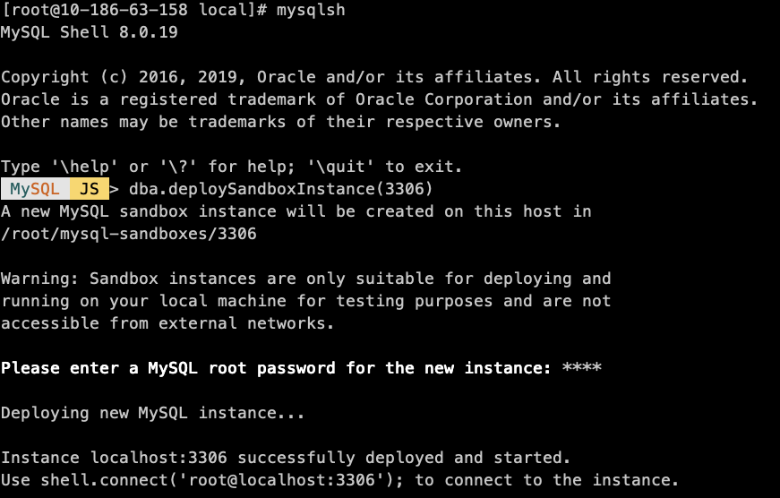MySQL JS > dba.deploySandboxInstance(3306)