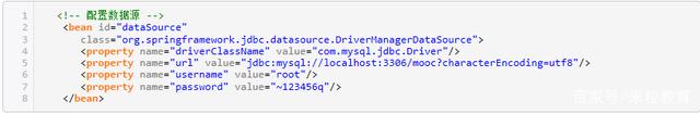 数据源可以在Spring配置文件中进行配置,配置代码如下。