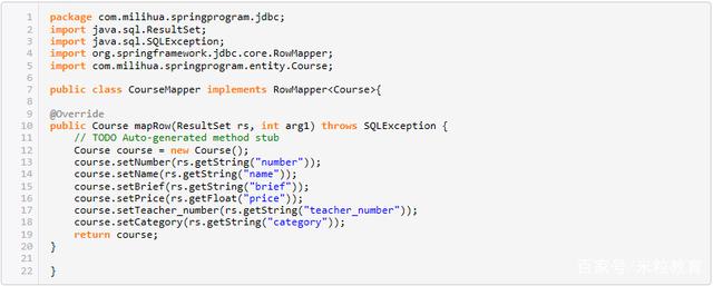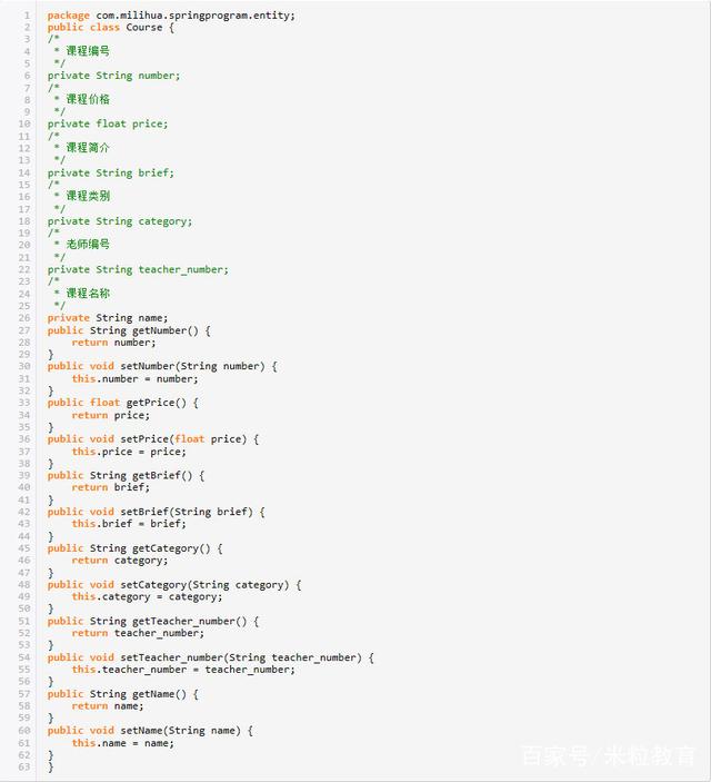 访问对象实体类定义了要访问的对象结构,假设要访问的数据对象是数据库,则该实体类定义了数据库中一个表的结构。mooc数据库course表的实体类代码如下。
