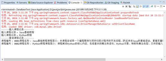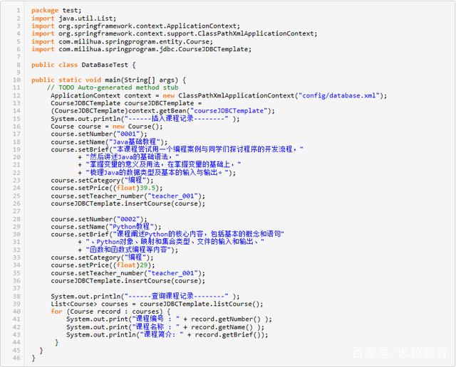 前面主要讨论了配置数据源和创建数据访问对象(DAO)相关内容,解决了程序如何访问数据库以及数据库表的读写问题。下面给出一个程序实例,利用前面配置的数据源和已创建的DAO对象,实现对mooc数据库course表的课程插入和查询操作。
