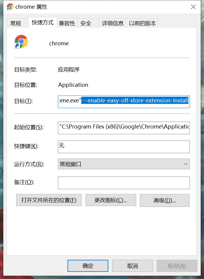 在chrome的快捷方式中的目标那里最后面添加" --enable-easy-off-store-extension-install"就可以了。