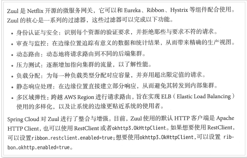 不管是来自于客户端(PC或移动端)的请求,还是服务内部调用。一切对服务的请求都会经过Zuul这个网关,然后再由网关来实现鉴权、动态路由等等操作。Zuul就是我们服务的统一入口。