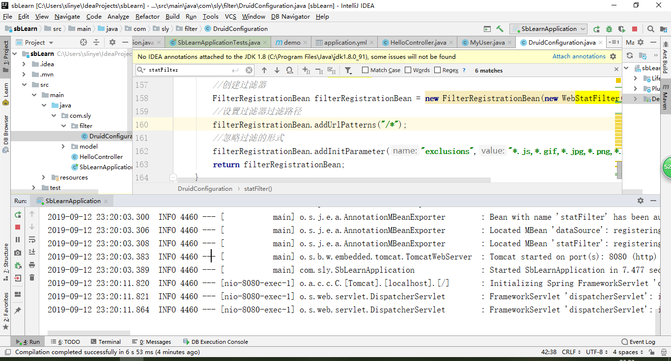 过程遇到好多错,最后还是成功了。创建一个DruidConfiguration 类以及pom文件