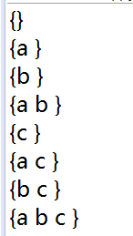 这里需要思考一下:为什么让x最多左移2位呢?就是因为我们现在讨论的集合{a,b,c}仅包含3个元素,如果用数组来表示的话,该数组下标最大值就是2。如果集合元素数量为n,则x最多左移n-1位。求子集的完整代码如下: