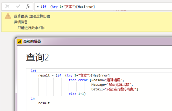 Power Query M语言中,使用error表示计算表达式处理过程中的异常错误。