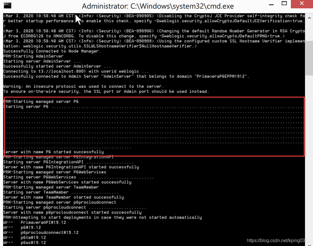 大致情况是启动 p6服务后(version 19.12),出现了以下异常