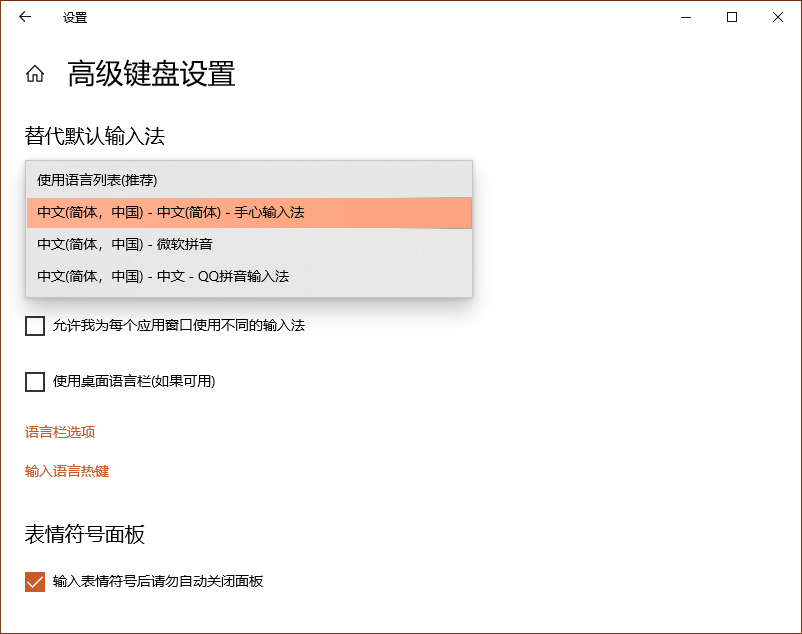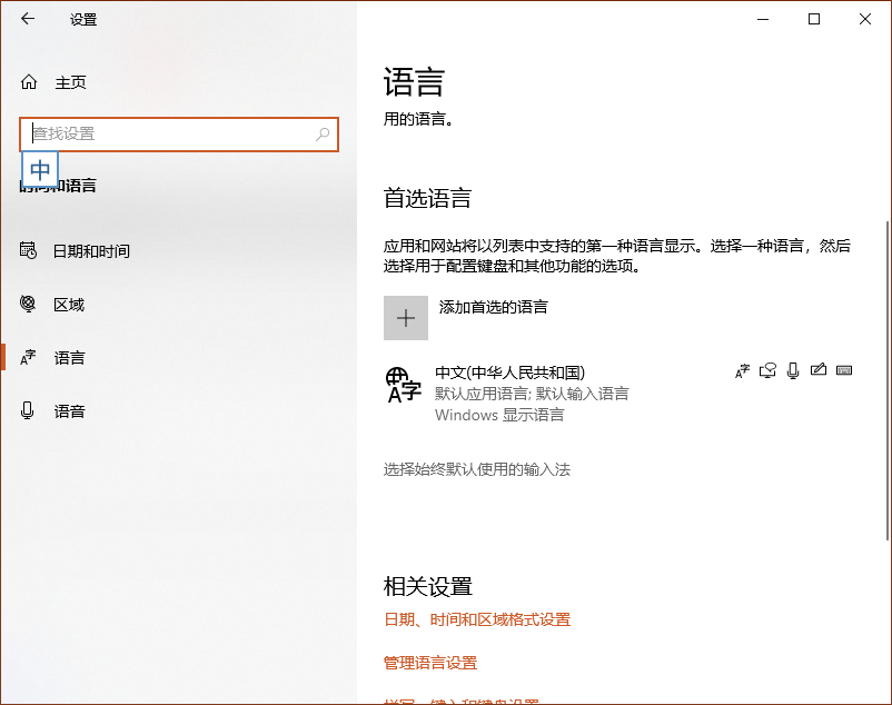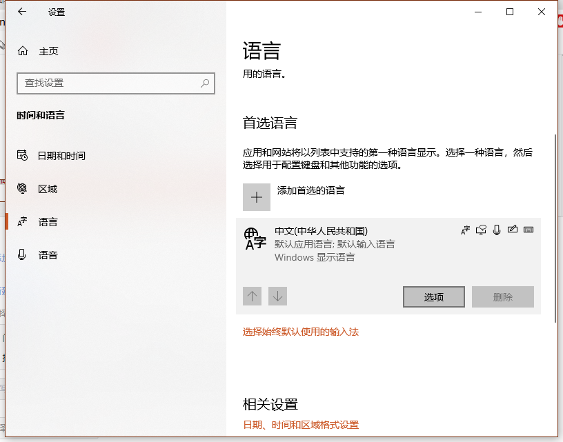 1.点击开始——设置 2.点击时间和语言 3.点击语言 4.在首选语言里单击默认语言——选项 5.单击添加键盘 6.选择你要设置得输入法 7.点击返回按钮 8.点击选择始终默认使用的输入法 9.在下拉列表里面选择你需要得默认输入法 这样就ok了,看完记得点赞、关注、打赏 来源:CSDN作者:rainyrice链接:https://blog.csdn.net/rainyrice/article/details/104625751 标签 输入法 windows 10