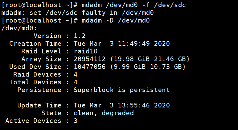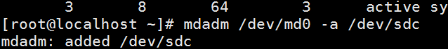 同时可以通过mdadm /dev/md0 -a /dev/sdc 来恢复
