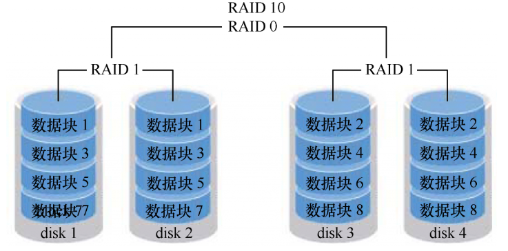 冗余:只要系统中任何一对镜像盘中有一块磁盘可以使用,甚至可以在一半数量的硬盘出现问题时系统都可以正常运行。