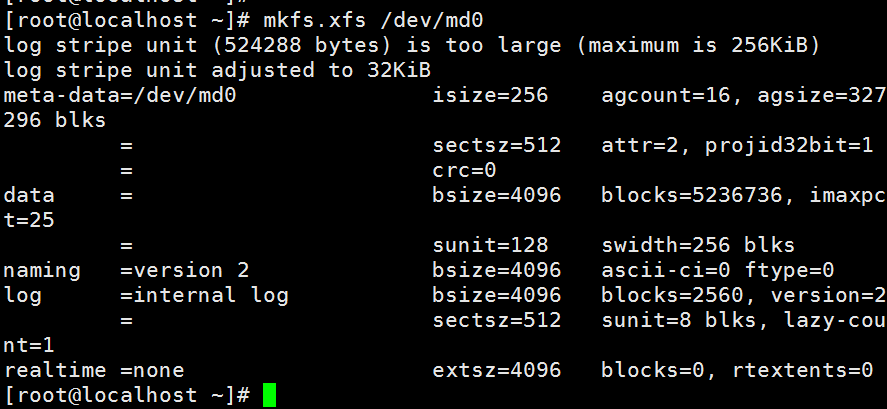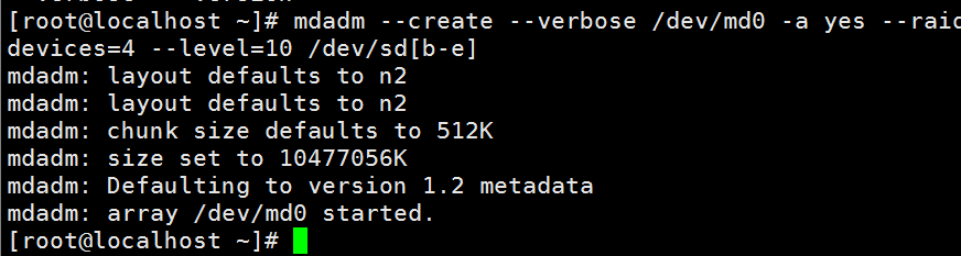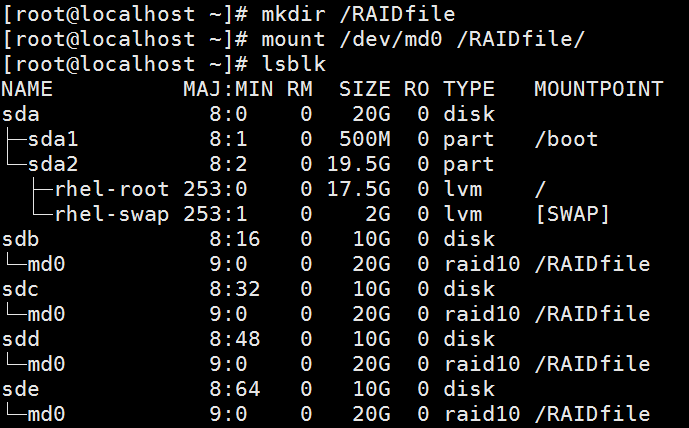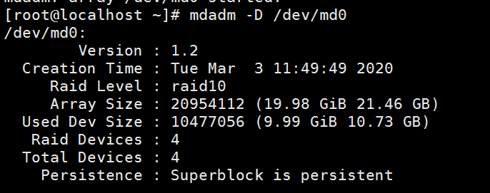 - 查看创建的RAID /dev/md0的情况