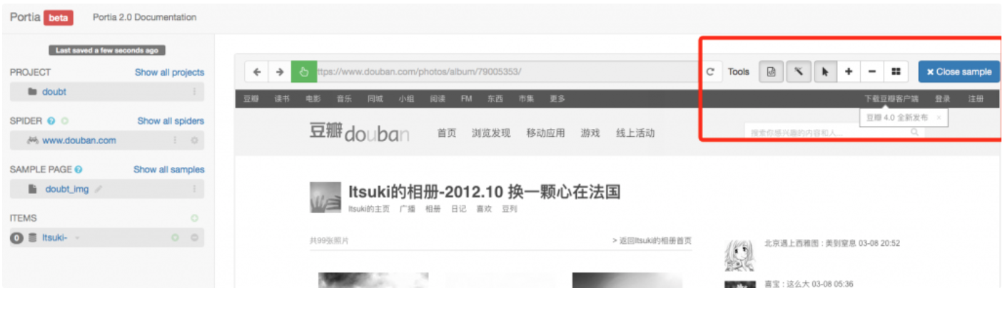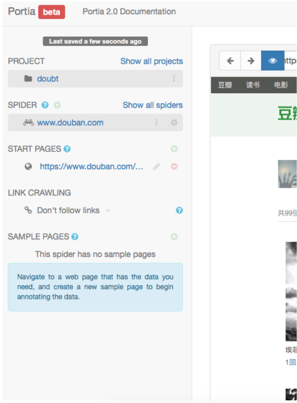 假设输入的是一个相册https://www.douban.com/photos/album/79005353/,然后进入可编辑的界面,点击New Spider