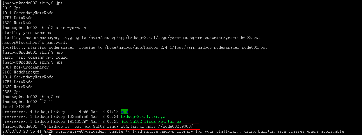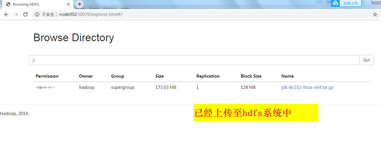 1.登陆http://node002:50070/ 2.向hdfs中上传文件 3.查看结果 4.rm linux中的jdk,从hfds中下载。hdfs的文件是被切割成block块,寻找hdfs的URI,hdfs://node002:9000/下载文件 来源:oschina链接:https://my.oschina.net/u/4434424/blog/3186675 标签 HDFS