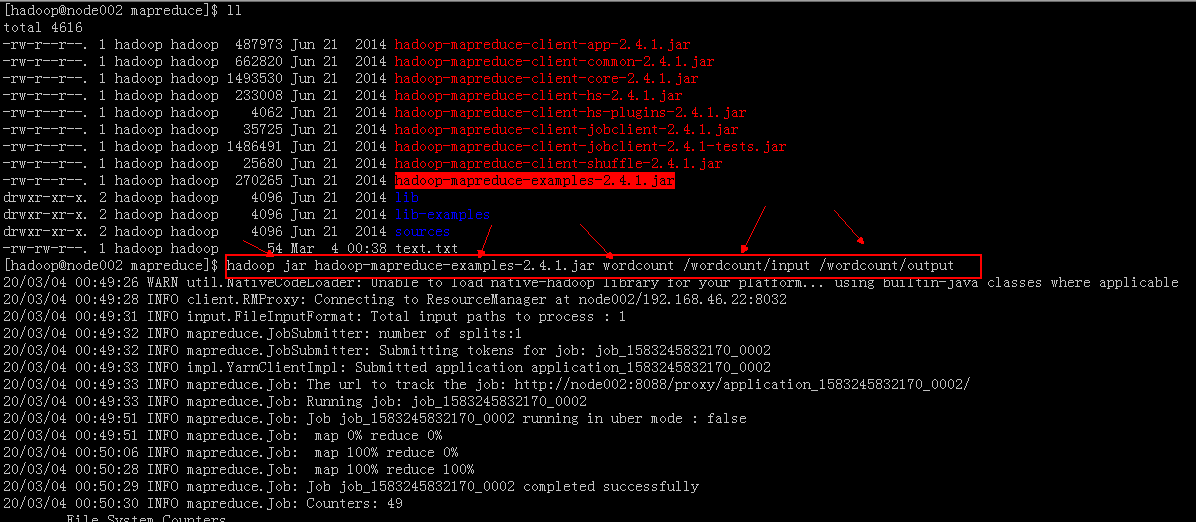 1.在mapreduce下新建一个text.txt文件 2.在hdfs上新建输入输出文件夹 3.把text.txt上传到hdfs的input目录中 4.计算 5.显示结果 来源:oschina链接:https://my.oschina.net/u/4434424/blog/3186704 标签 HDFS MapReduce