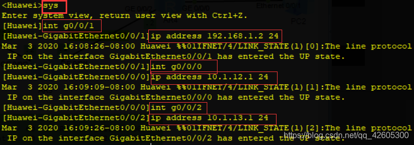 二、分别对R1、R2、R3、R4进行IP地址的配置