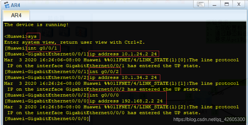 1、AR1是不能直接到达AR4,还需要在AR2上配置一条从10.1.24.0/24 到达192.168.2.0/24的静态路由