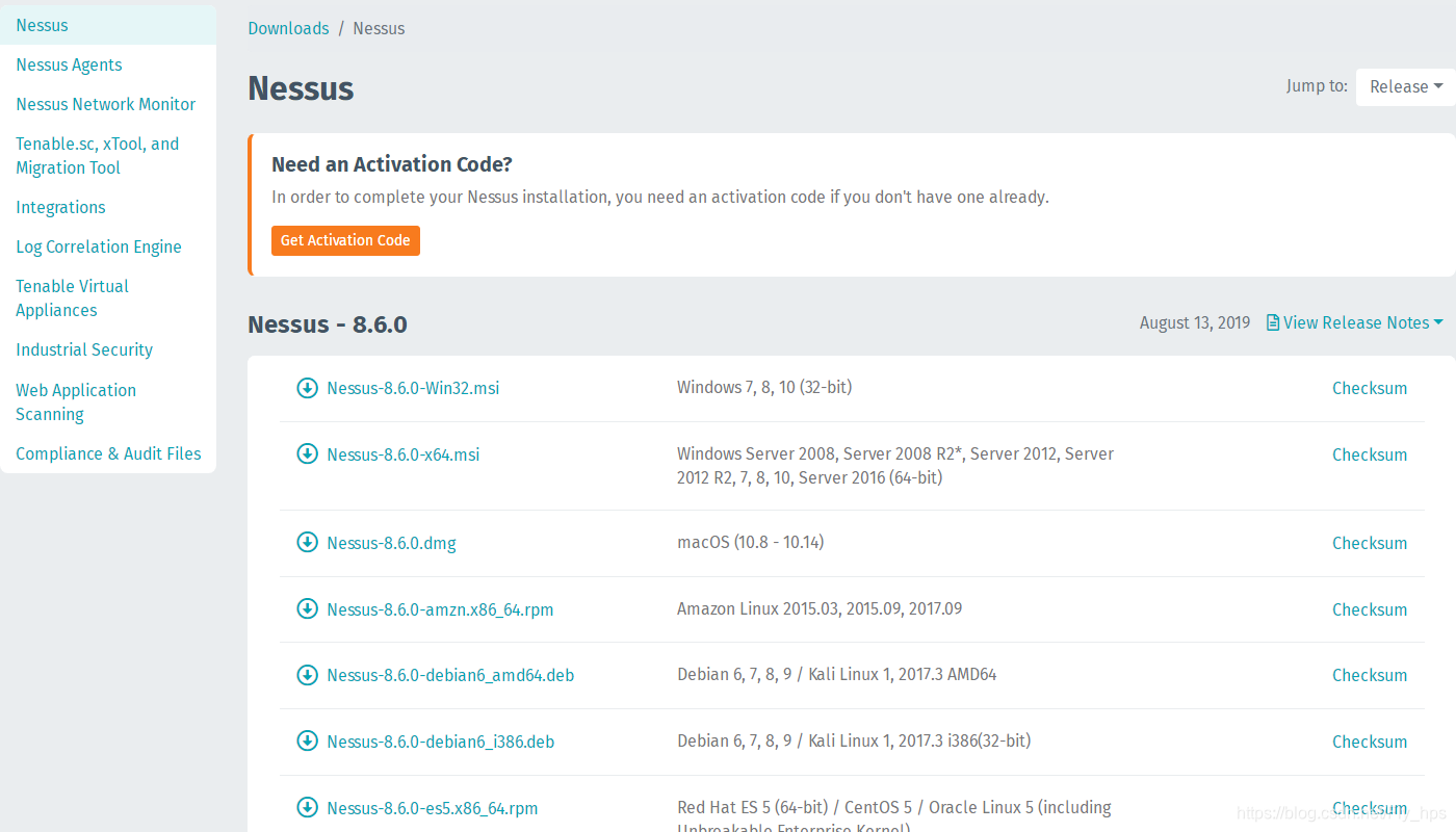 下载地址:https://www.tenable.com/downloads/nessus
