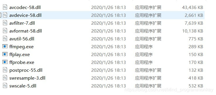 第一部分是三个作用不同的工具软件,分别是:ffmpeg.exe,ffplay.exe,ffprobe.exe