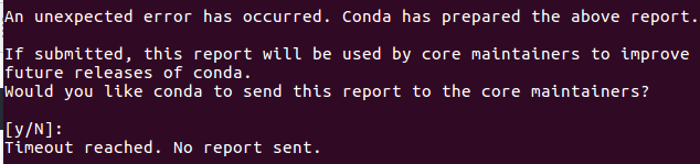 An unexpected error has occurred. Conda has prepared the above report.If submitted, this report will be used by core maintainers to improve future releases of conda.Would you like conda to send this report to the core maintainers?