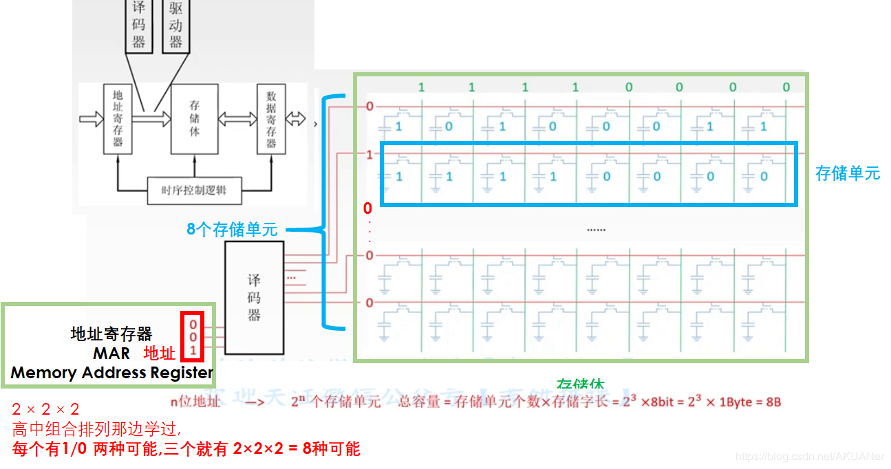 ∴ 总容量 = 存储单元个数 × (存储字长/8)Byte存储体 MAR地址寄存器