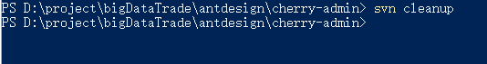 SVN报错 svn: E155004 is already locked,please clean up... 解决方案 找到报错目录 如:本例为 D:\project\bigDataTrade\antdesign\cherry-admin 执行cleanup命令 命令: svn cleanup cmd执行 PowerShell执行 来源:oschina链接:https://my.oschina.net/yuhuashang/blog/3187765 标签 Cherry Subversion (SVN) Ant Design powershell