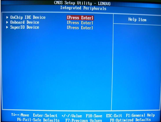 选择IntegratedPeripharals(外围设备设置)中的SuperIO Device