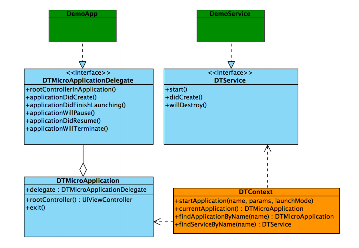 按照uml所示,微服务与微应用应该是分别遵循了两个协议,但是我们在官方demo中发现,如果不遵循此协议,也是可以运行的,无论是微服务还是微应用,都可以仅在plist文件里登记的情况下,完成相应的操作