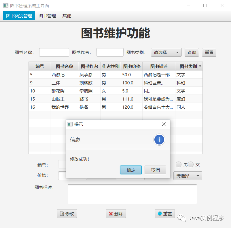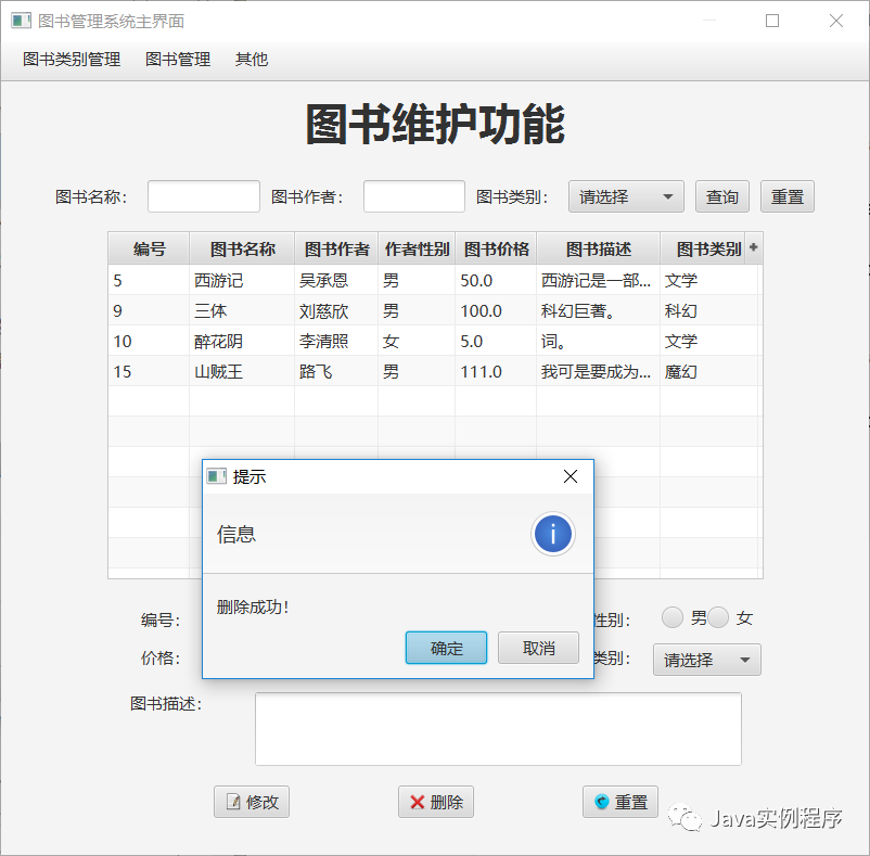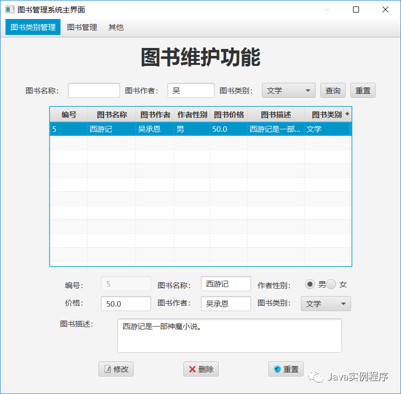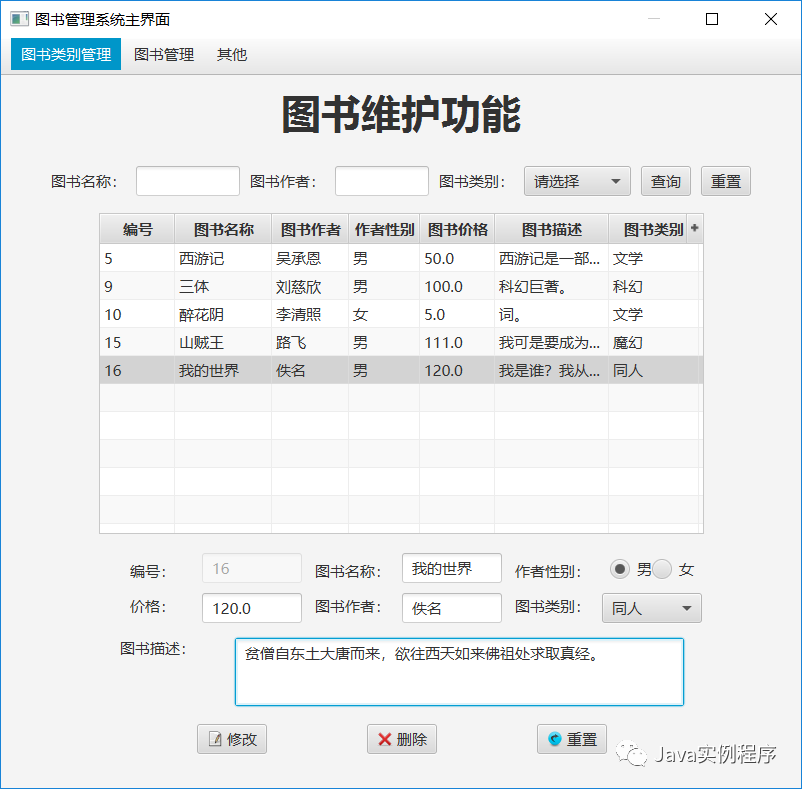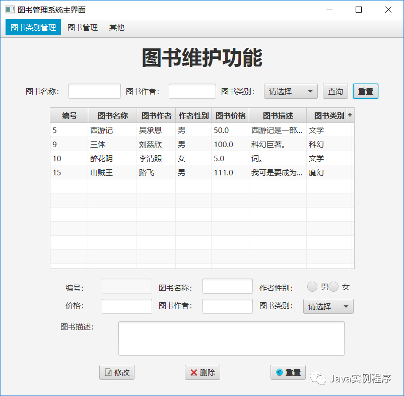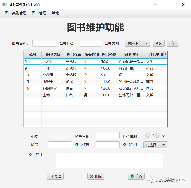 在上一节中实现了图书添加功能,而在本节将实现图书维护界面以及图书记录的查询、修改和删除。
