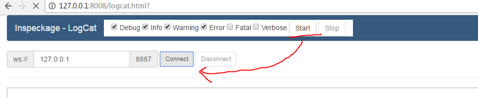 点击Start,再点connect就可以在网页中实时查看app的logcat输出