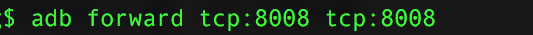 2)在电脑终端执行如下命令,转发手机的8008端口到本地