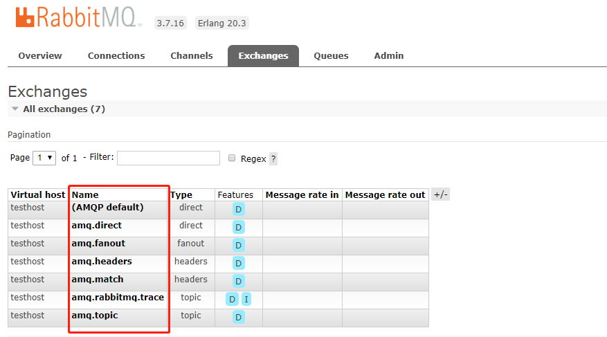 2.同一个Vhost下不可添加相同类型(Type)的exchange