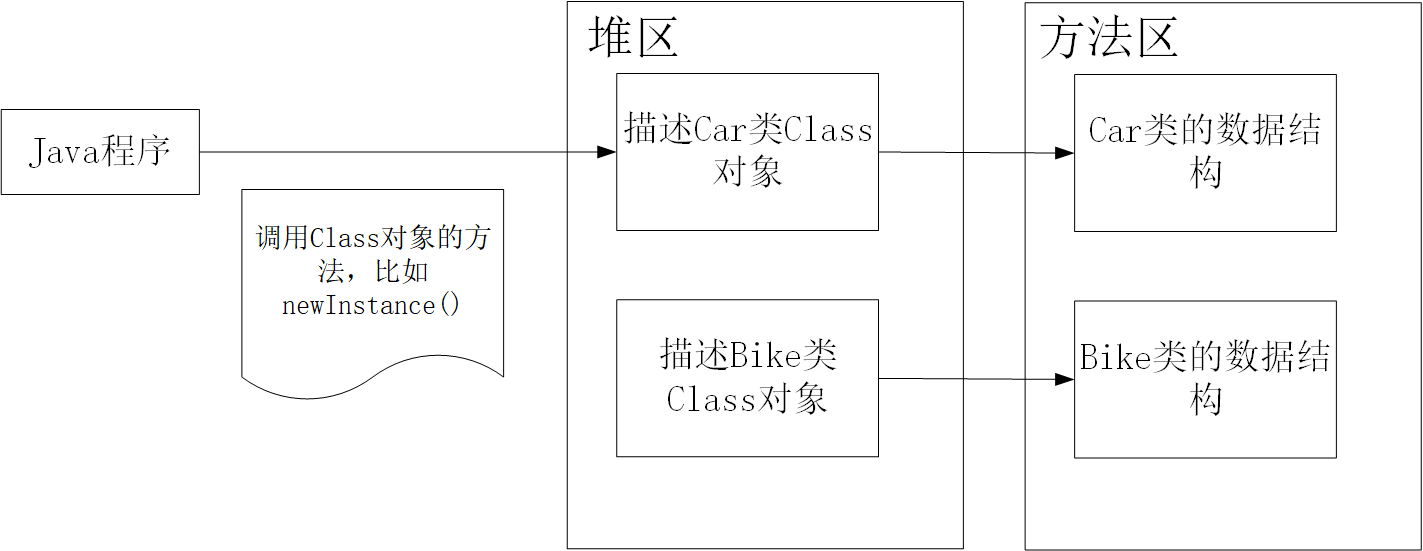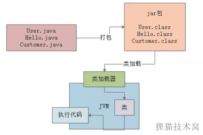 类的加载指的是将类从“.java”代码文件编译成的“.class”字节码文件中的二进制数据读入到内存中,将其放在运行时数据区的方法区内,然后在堆区(HotSpot虚拟机在方法区中)创建一个java.lang.Class对象,用来封装类在方法区内的数据结构。类的加载的最终产品是位于堆区中的Class对象,Class对象封装了类在方法区内的数据结构,并且向Java程序员提供了访问方法区内的数据结构的接口。