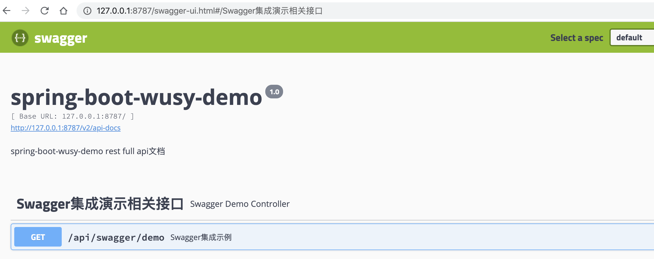 到这里集成Swagger完成,接下来我们启动项目然后在浏览器中输入http://127.0.0.1:8787/swagger-ui.html,观察结果