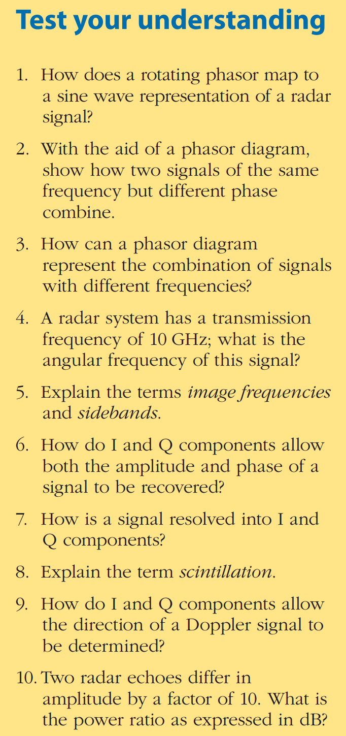 利用相量,人们可以很好的理解频率调制、幅度调制,理解边带的产生和镜频的产生。这里就不赘述了,大家看书。章末原书作者还提了分贝的使用,在雷达行业分贝这一单位经常使用。
