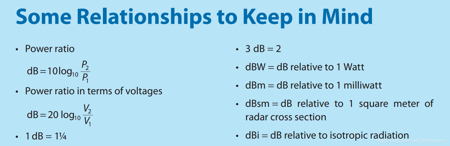 这章作者还讲了分贝这个单位的一些计算,一些常用的计算如下: