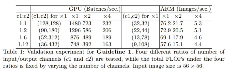 文中作者讨论了常规的模型加速和压缩模型评估的指标(FLOPs:每浮点运算数,这个指标主要衡量的就是卷积层的乘法操作)的问题,并不能完全衡量模型速度,并通过实验主要讨论了MAC(内存访问操作所消耗的计算)指标。