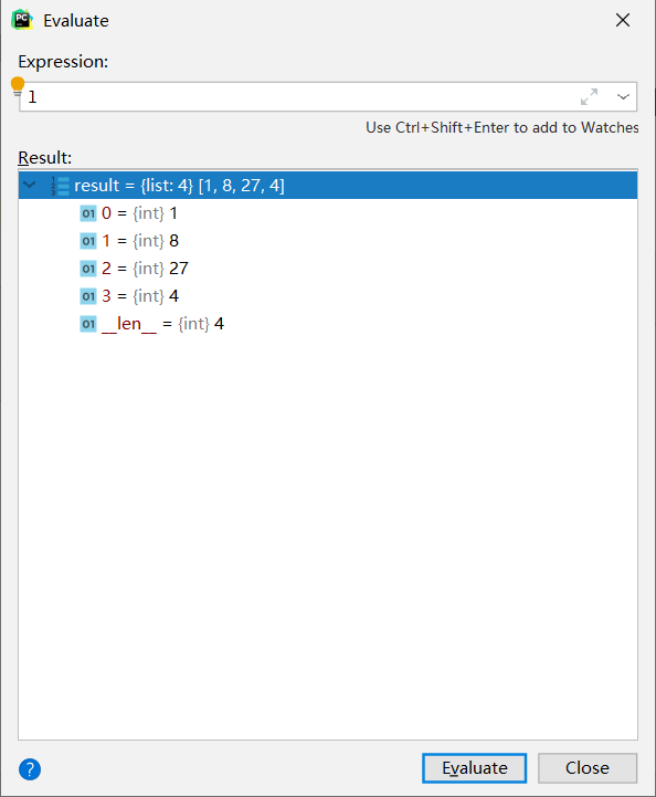 查看变量的具体信息,如查看上面的列表l