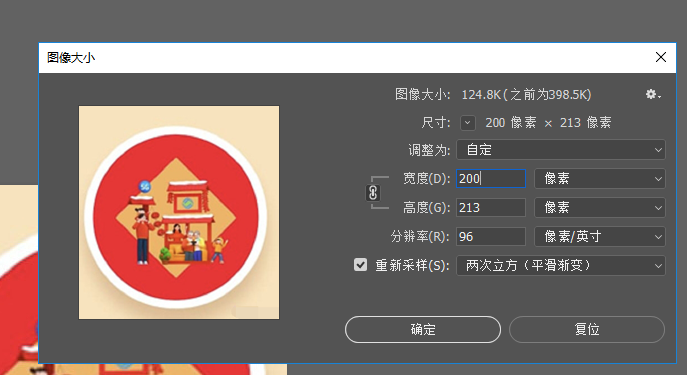 3.打开要处理的一张图片,更改图像大小(点击图像->图像大小或alt+ctrl+I),保存(点击文件->储存为->保存),选择合适的大小,确定