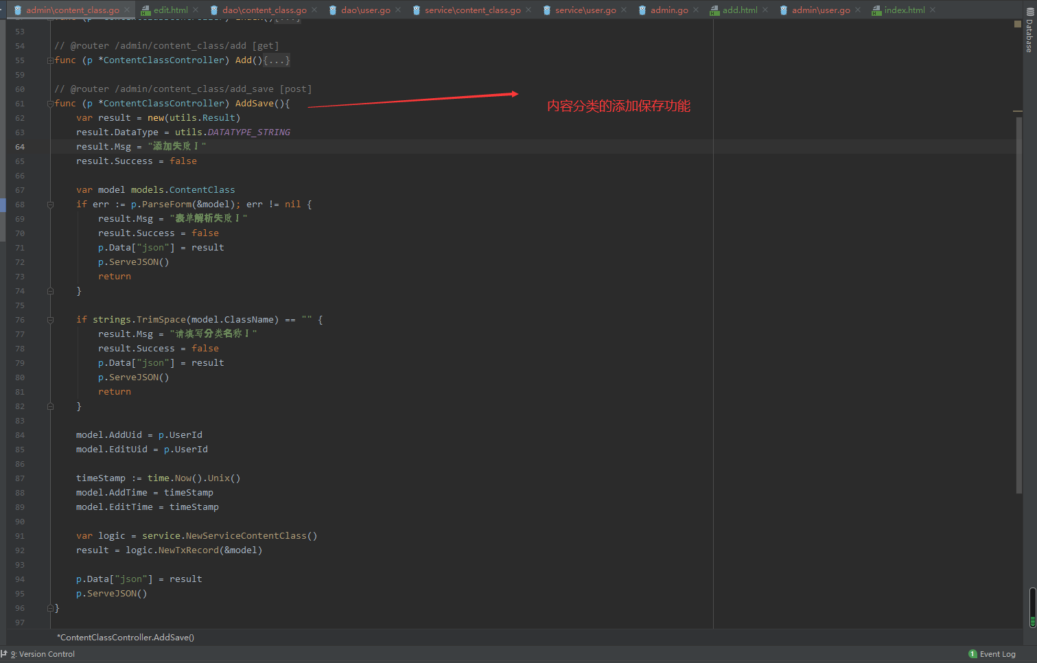 昨天太晚了,着急睡觉忘记实现查看页了,再看看部分Go的后台代码